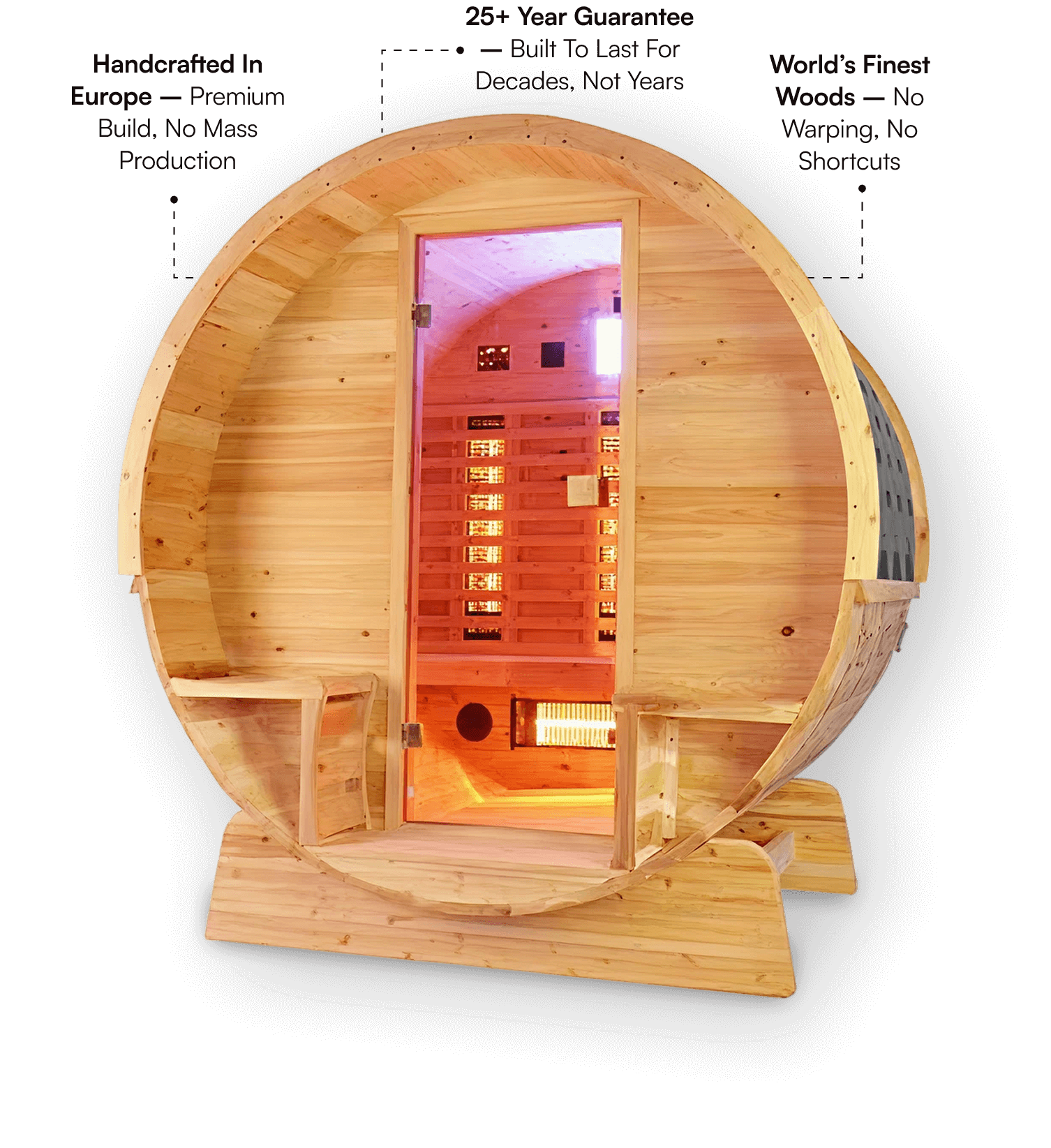 We stand behind this European hand craftsmanship for life. If your sauna structure ever cracks, warps, or fails under normal use, we’ll repair or replace it for free. That’s our promise of lifetime lasting wellness.